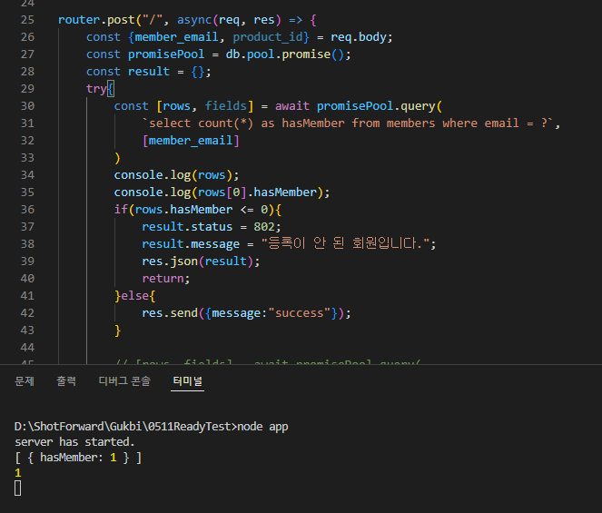 4. mysql 쿼리 작성 후 rows 값을 사용할 때 값 타입이 배열인지 객체인지 유의하기.