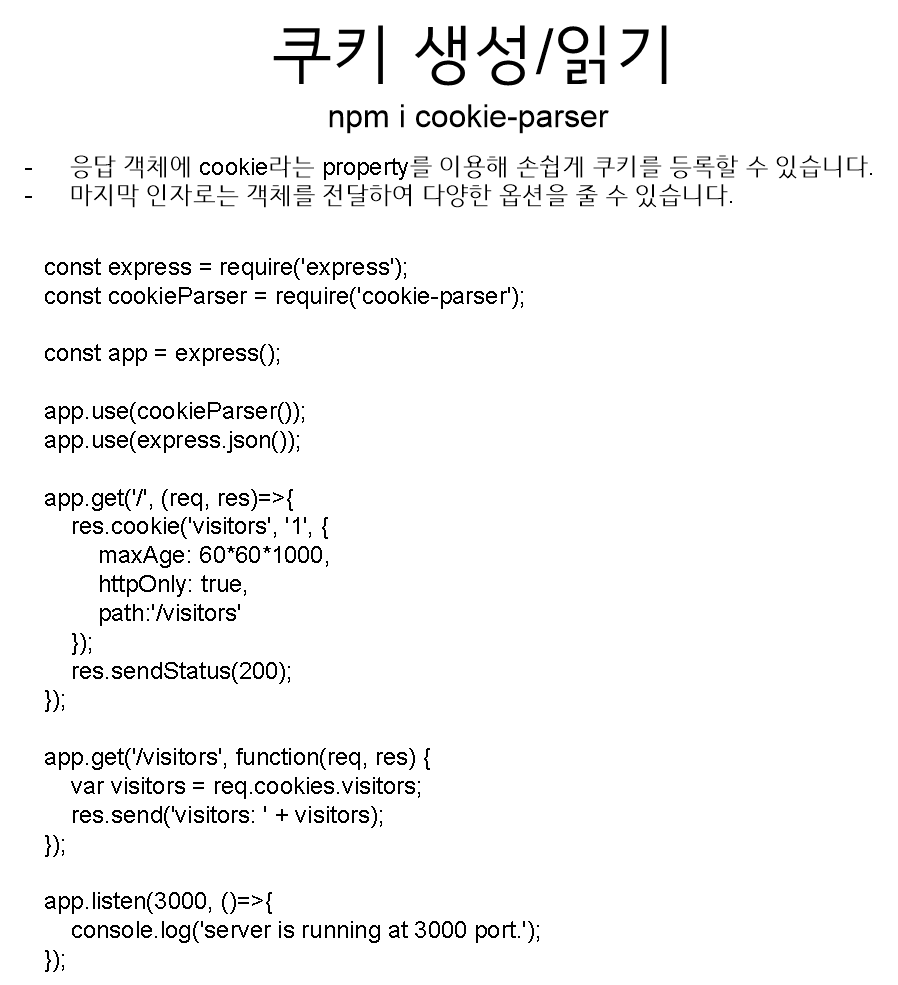 http 모듈 말고, 이젠 express에서 쿠키를 사용해보자.