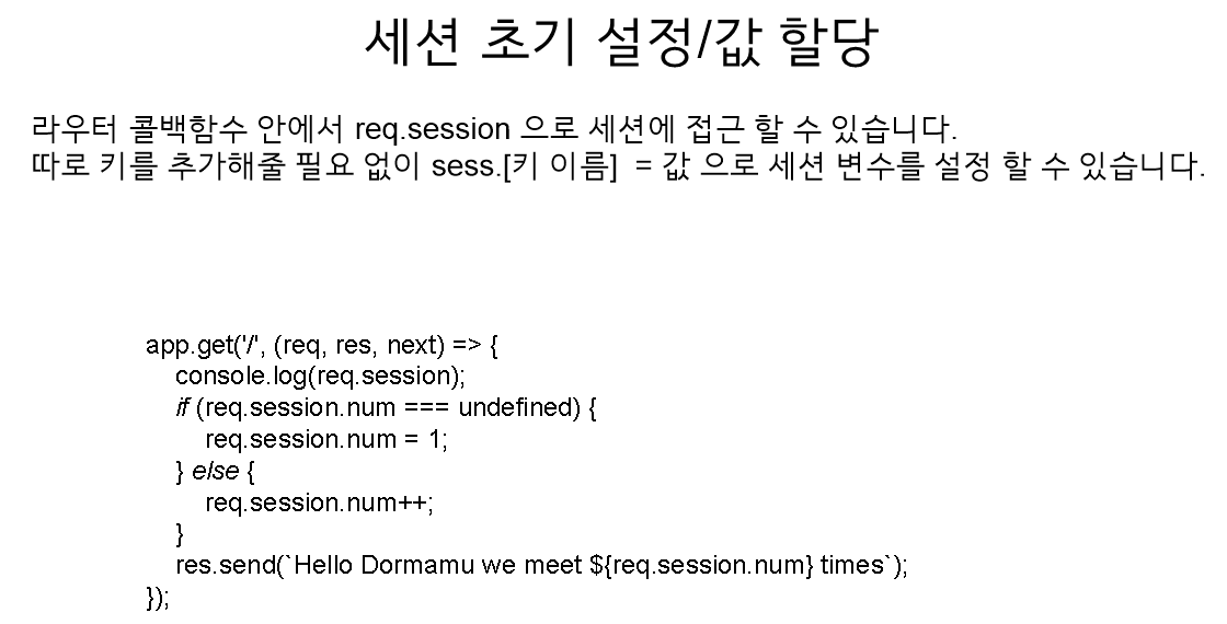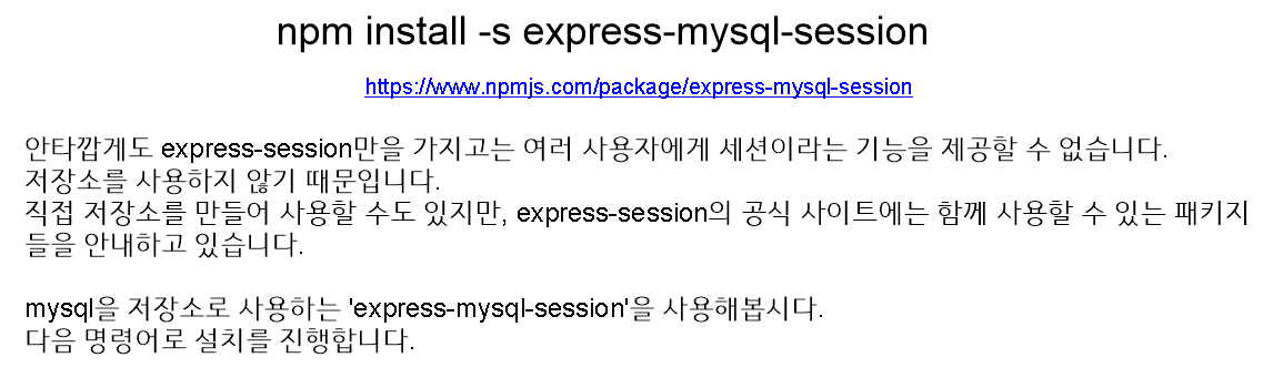 세션을 설치하려면 npm install -s express-session 을 터미널에 입력해야 한다.