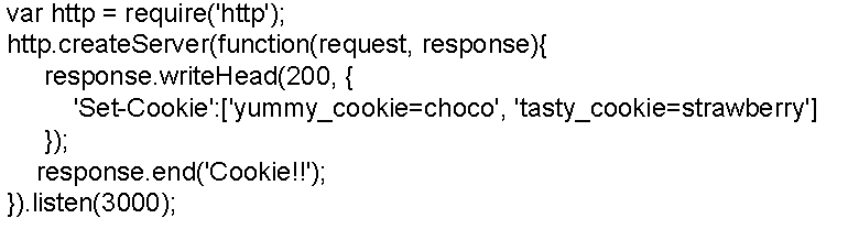 객체의 인자로 'Set-Cookie' : '키=밸류' 값을 전달한다.