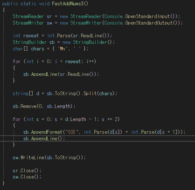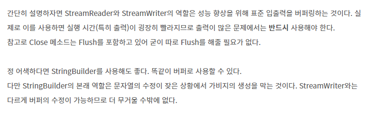 그러나 시간은 StringBuilder와 StreamReader 모두 사용하여 푼 것보다