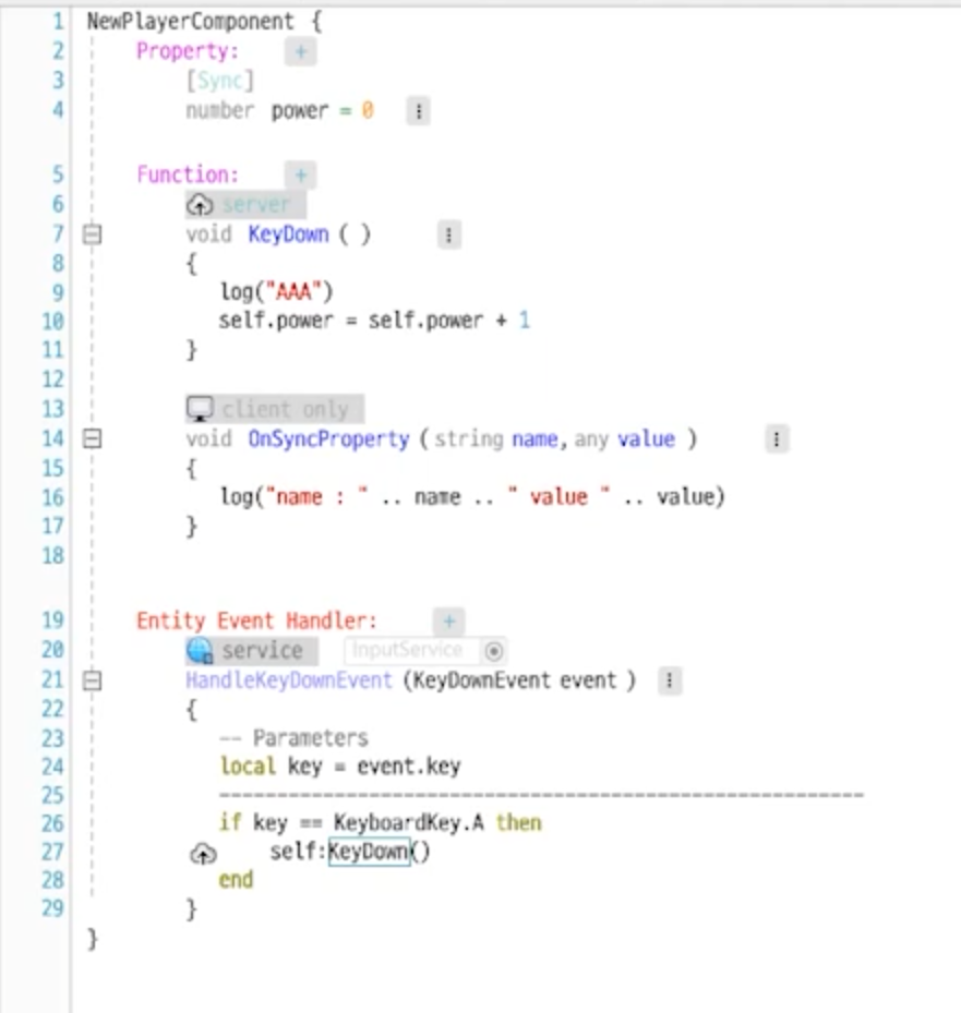 몇몇 프라퍼티 타입은 이 Sync를 지원하지 않는다. (ex. any, table...) - 서버 클라 간 오류를 방지하기 위해 메월드의 주요 함수들은 server only이다.