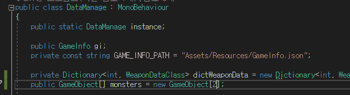 1) 게임 첫 시작 때 DataManager에서 생성할 모든 몬스터를 배열에 손수 옮겨 넣기 때문에,