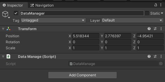 DataManage 스크립트를 부착한다.