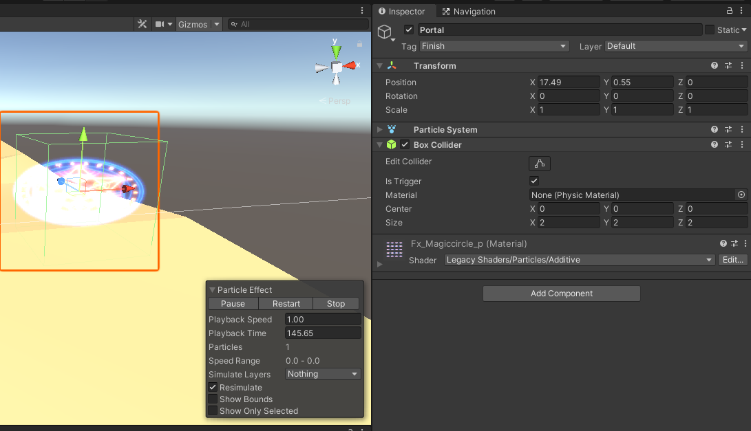 포탈에 트리거 콜라이더를 주었고, 태그를 Finish로 바꿔서