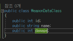 2) 저장한 json파일을 유니티 상에서 읽어들이기 위해 weapon_data를 받을 매핑클래스를 만든다.
