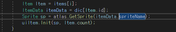 2) ItemData 매핑클래스를 만들고 id와 spriteName 멤버를 가지게 한다.