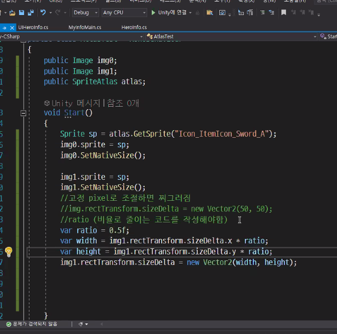 이미지의 크기를 스크립트에서 제어하는 사례