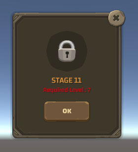 이 '스테이지가 잠겼을 때'에 오늘 만들 팝업창을 띄울 코드를 작성해보자.