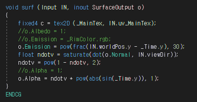 이 포스팅에서는 림라이트를 이용해 반투명한 홀로그램을 만들고,