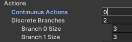 이산적인 값이라면 Discrete Actions Branches 와 개수가 동일해야 한다.