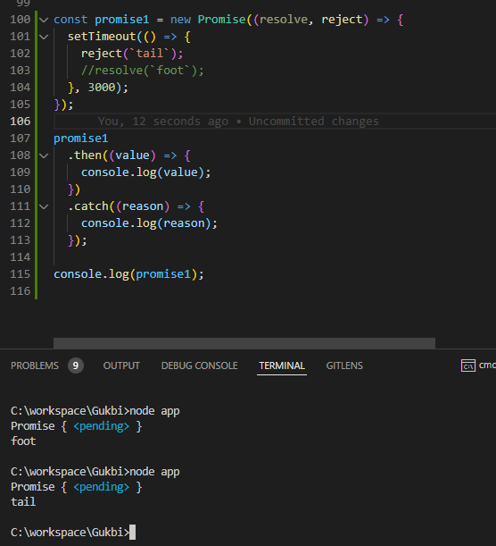 그 결과를 가지고 switch case 문처럼 then, catch 를 이행하고