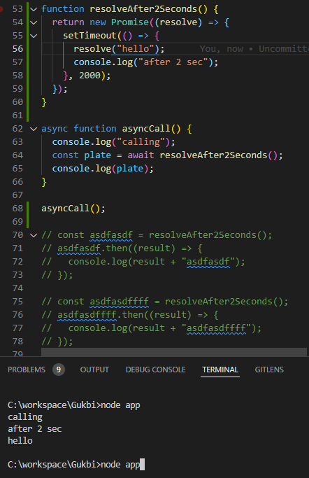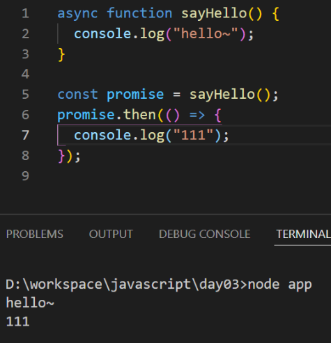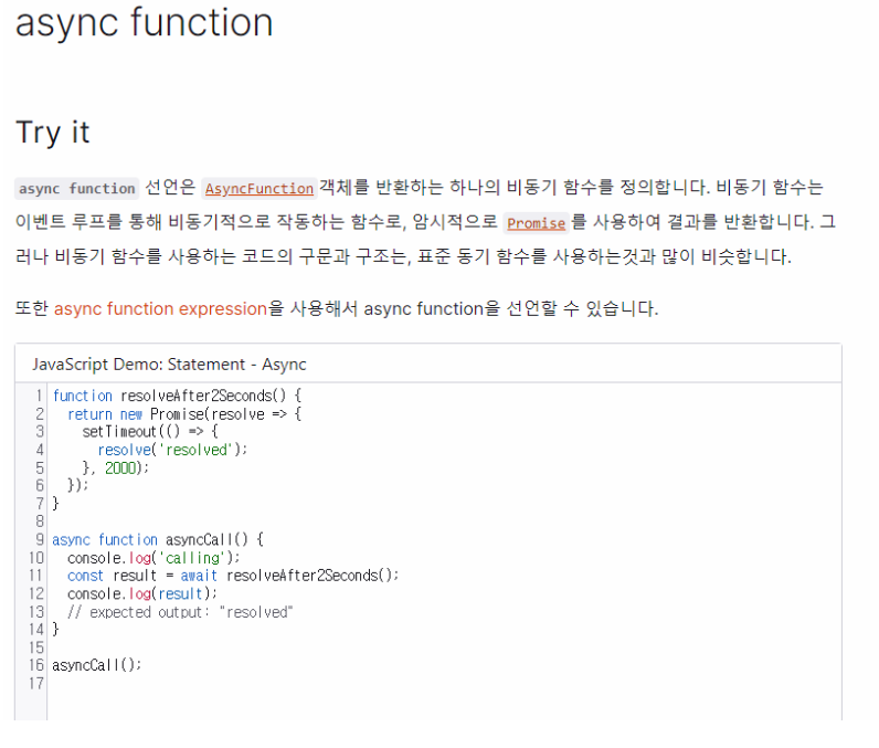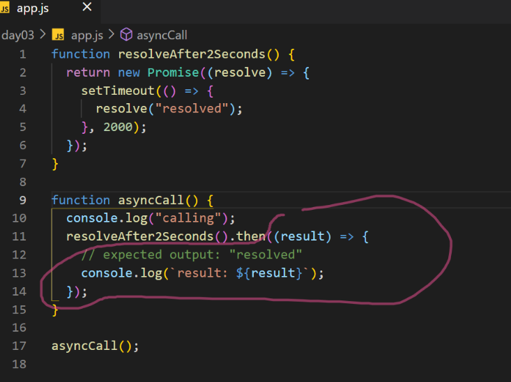 async는 다음 동그라미 표시한 부분의 코드를 좀 더 쉽게 사용할 수 있게 한다.