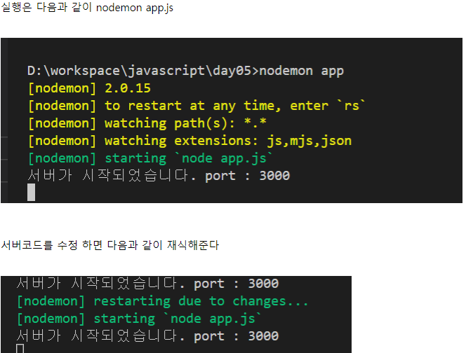 노드몬 (nodemon)설치 하기 (서버 코드가 변경되면 자동으로 재시작 해주는 모듈)
